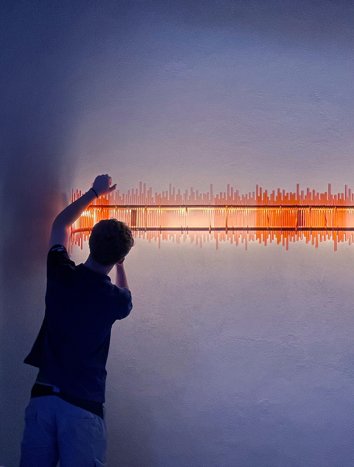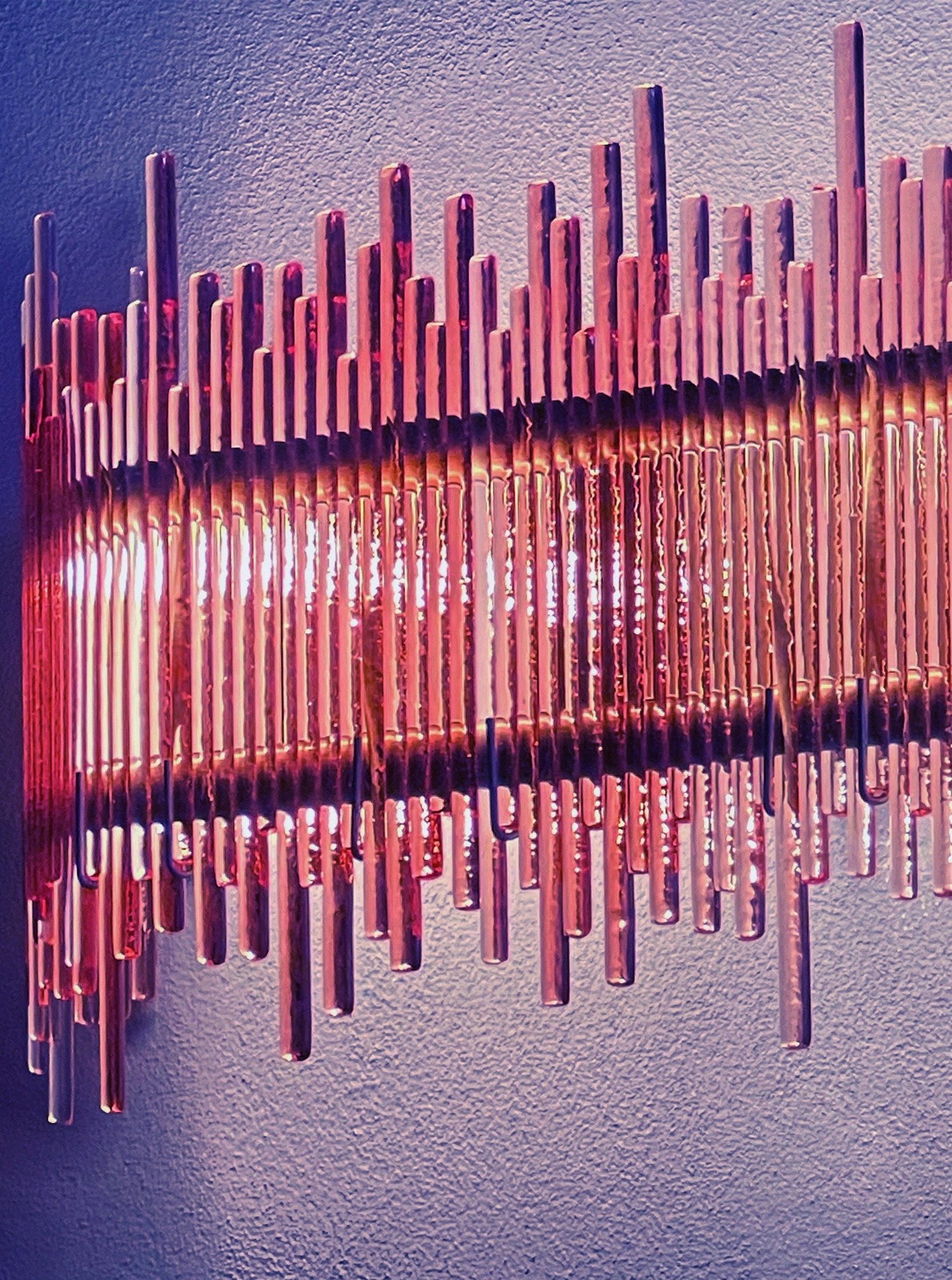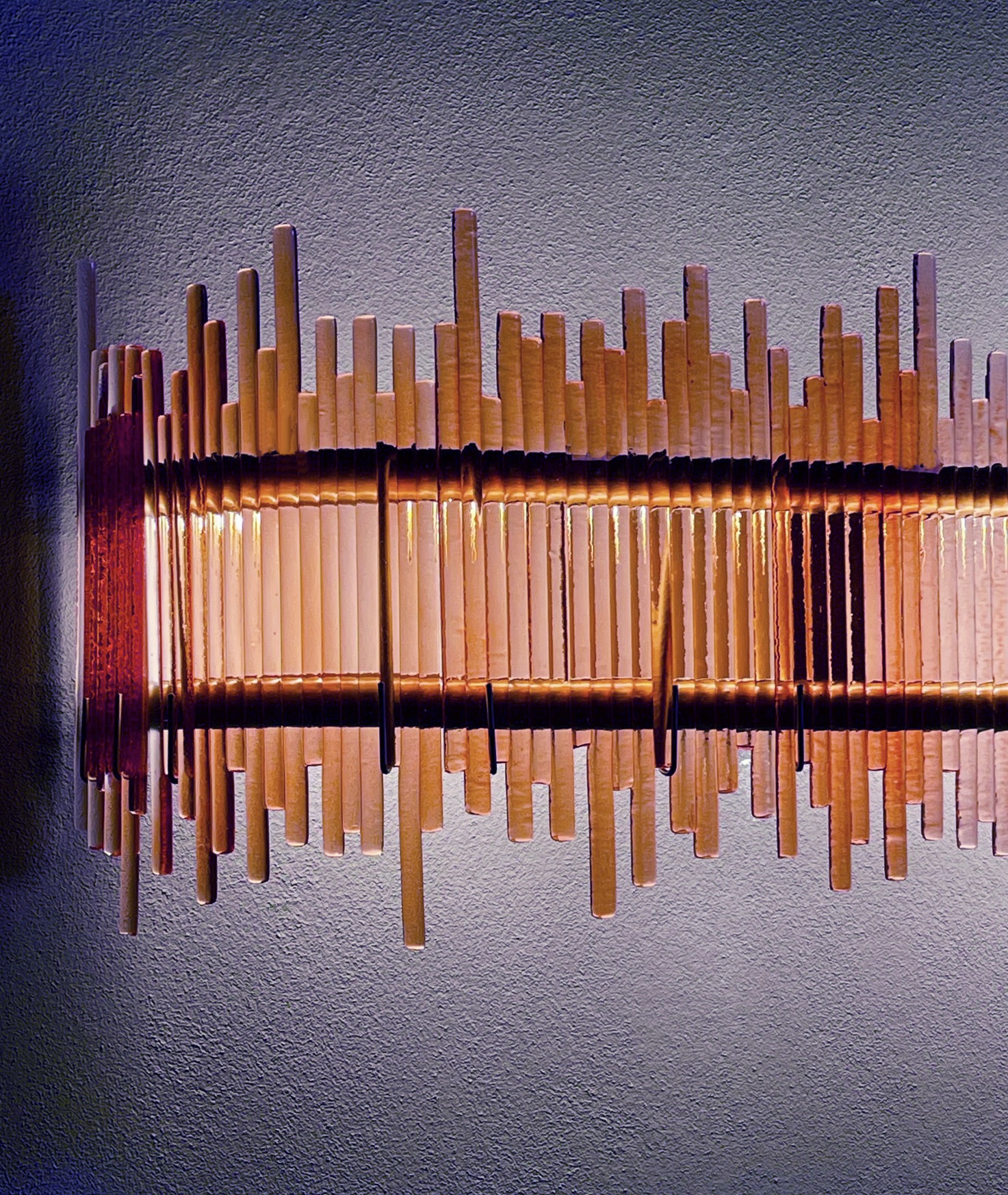 applique customizzabile in vetro di Murano e struttura in ottone, con sistema a LED regolabile.